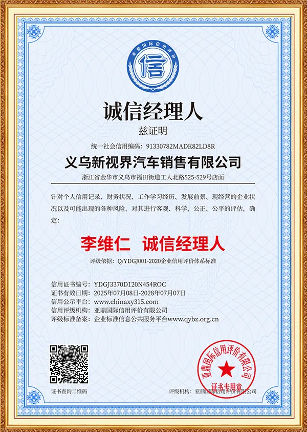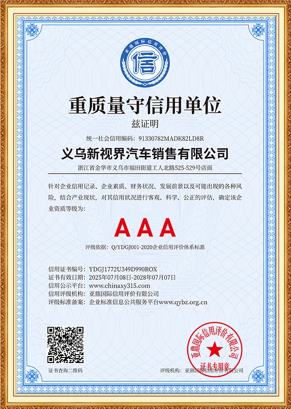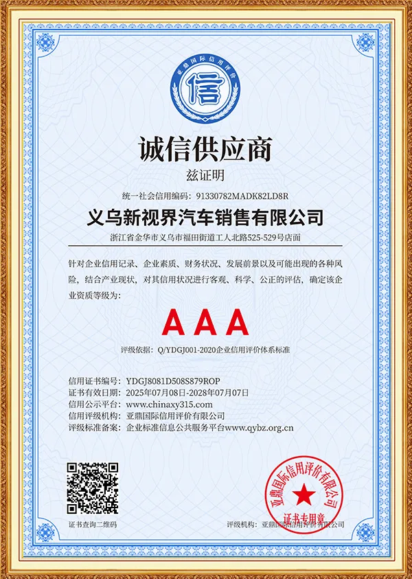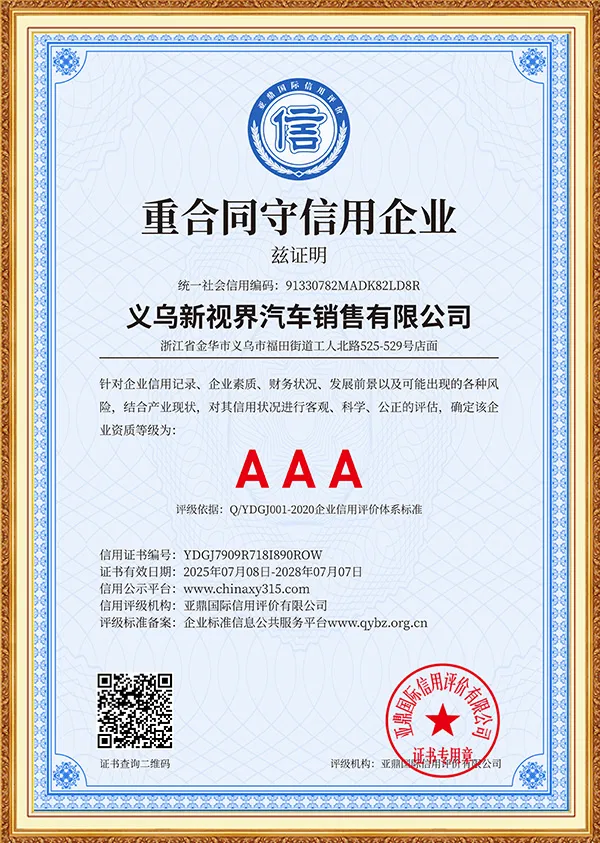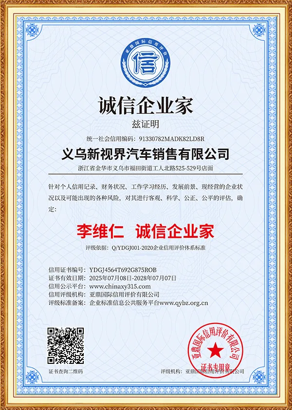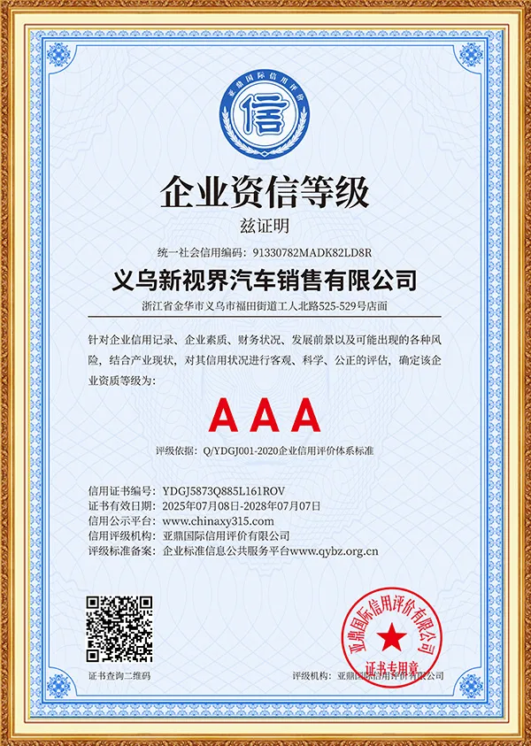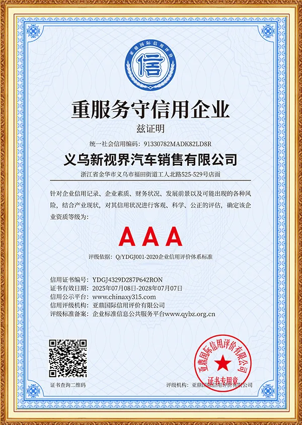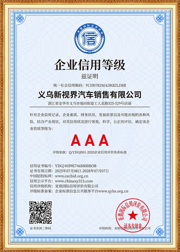 New Vision is an international green energy company focusing on the field of green and smart travel, and is committed to providing global users with full-industry chain solutions for new energy vehicles. The company was established in Yiwu, China in 2019. Based on the advantages of China's new energy vehicle industry, it has long-term cooperation with more than ten brand companies such as Mercedes-Benz, BMW, Audi, Land Rover, Trumpchi, BYD, Huawei, Kia, Volkswagen, Toyota, Honda, Changan, Ideal, Chery, Geely, Xiaomi, etc., to build a three-dimensional business system covering vehicle exports, parts supply, after-sales technical services, and infrastructure construction such as charging piles.